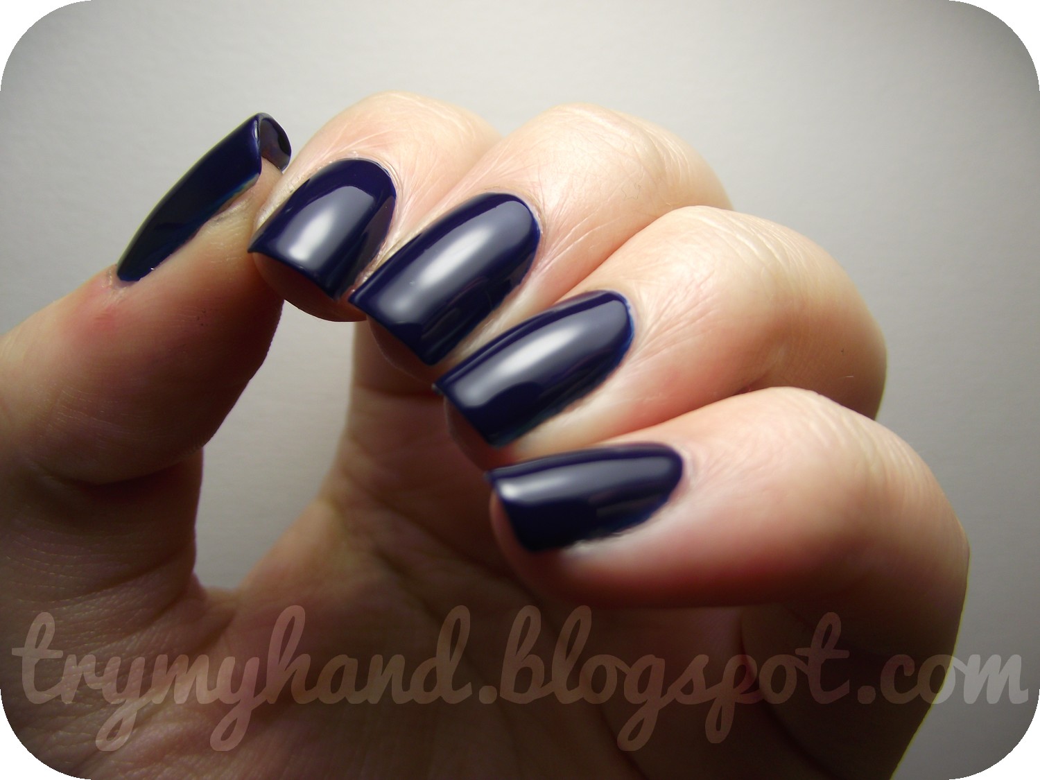 As I said before, this is a deep navy blue creme polish, and this swatch shows 2 coats with top coat. The formula of this was SERIOUSLY so amazing, I've never had a nail varnish that just glides on this well, it's a deram to work with ! Drying time was also really good as well !